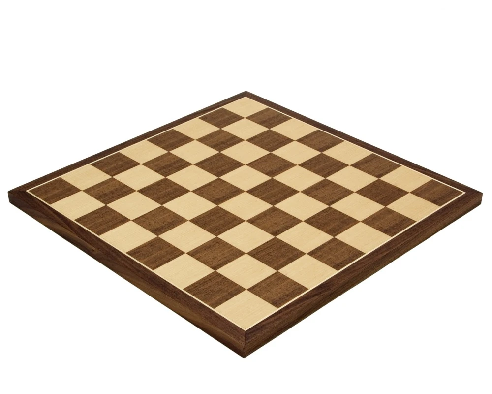 Produced by reputable chess board artisan Rechapados Ferrer S.A. of Spain, this superbly presented wooden chess board represents great value for money. Quality Walnut and Maple veneered construction using modern fabrication techniques has produced a board with sharp lines, fastidious detailing and a clean modern manner. A perfect companion for our chess pieces with king heights of 3.25 inches.