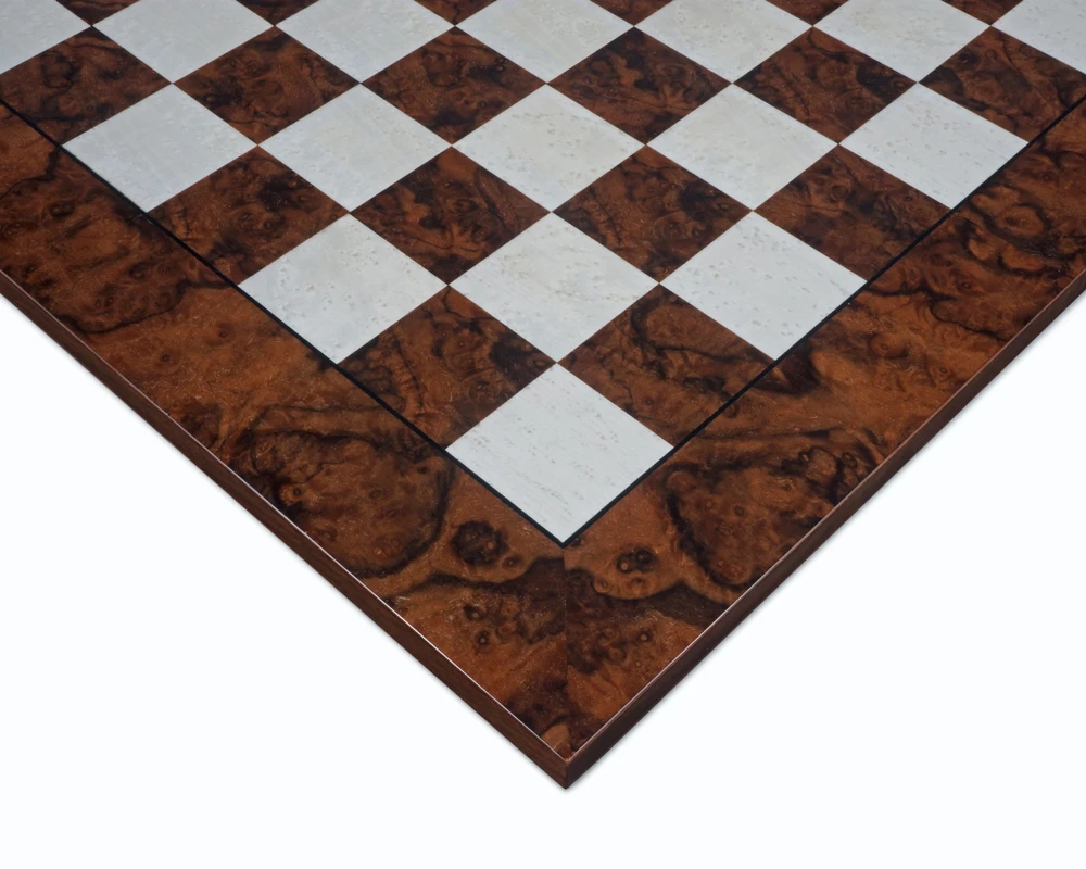 The natural beauty of these trees, which can live for more than 300 years, is instantly clear on our Dark Walnut Burl Luxury Chess Board.