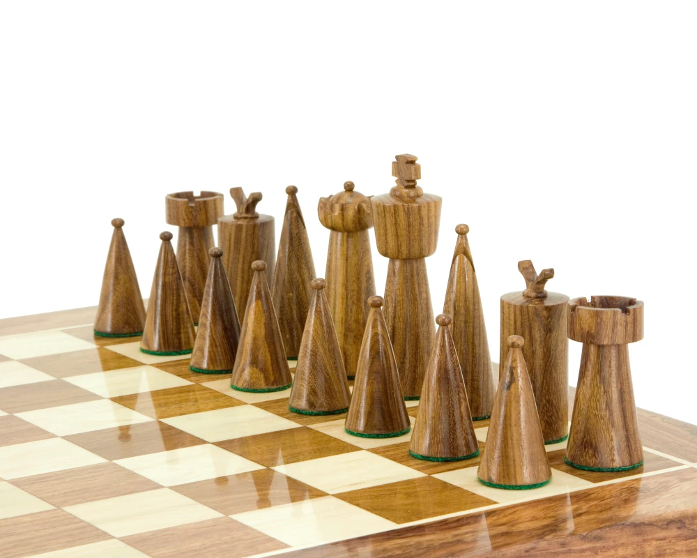 The pawns, with their robust cone shape, convey the idea of this simplicity fantastically, confounding the Art Deco series’ primary characteristic of cerebral clarity.