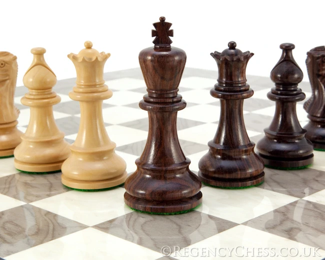 The chess board in this set has been expertly crafted by Rechapados Ferrer in Spain using precision laser cutting techniques and stunning wooden veneers combined with expert lacquering and finishing. The underside of the board is finished in a satin veneer that is a different colour from the playing surface of the board. The veneers used for the underside may vary in colour from batch to batch.