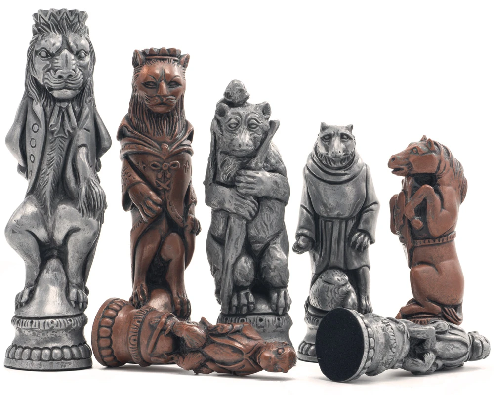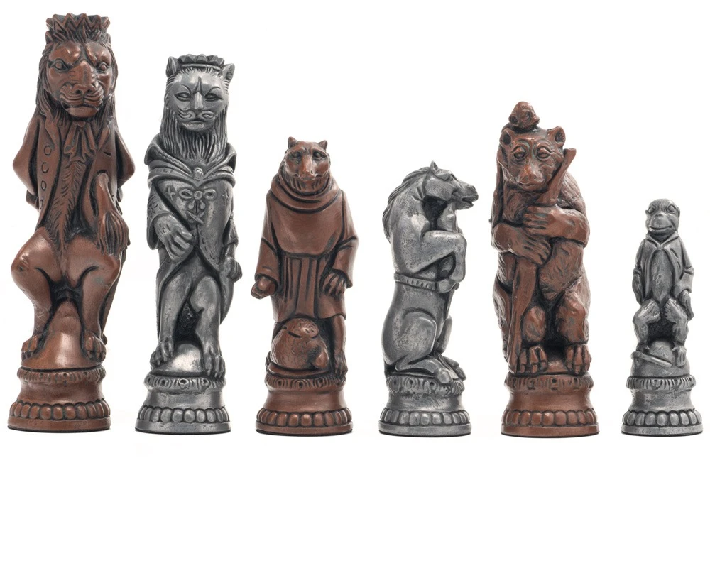 The master craftsmen at Berkeley Chess in Somerset, UK have taken these beloved and charming characters and adapted them into this wonderful chess set, finished with a unique, pewter and copper metallic colouring.