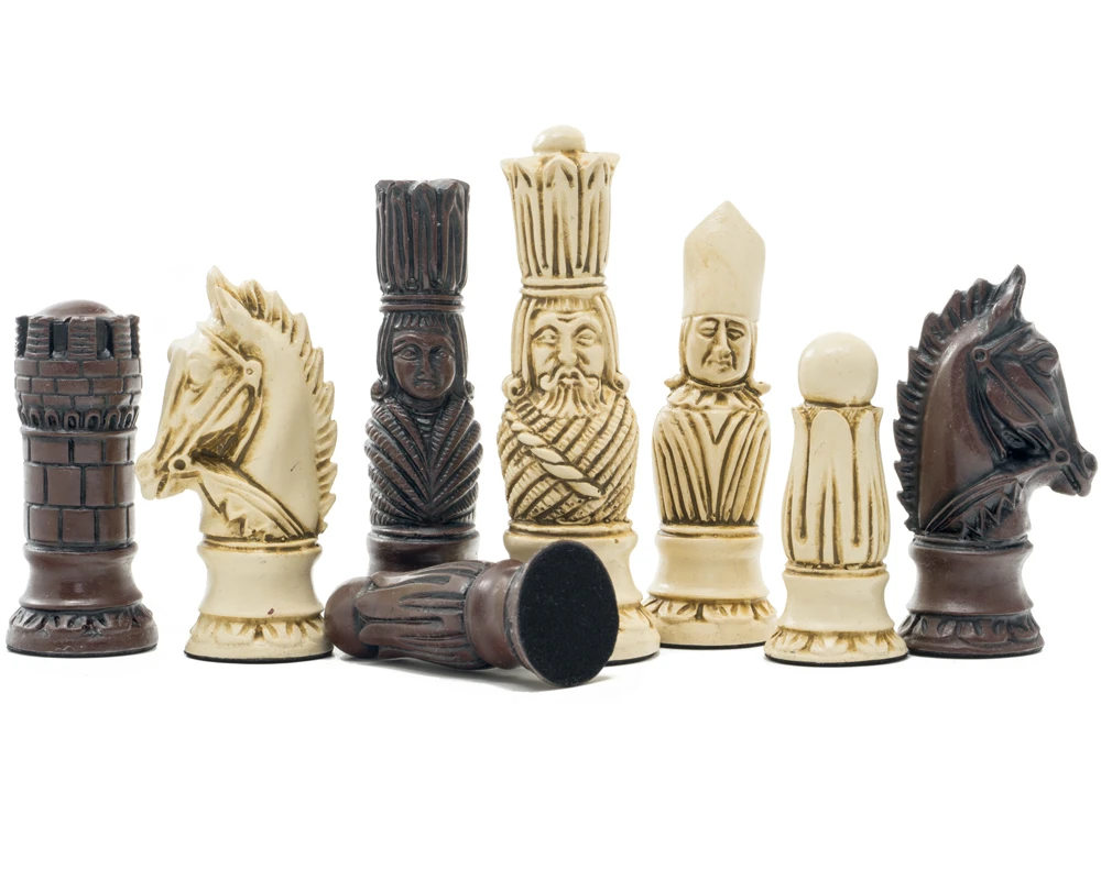 This uniquely atmospheric set of pieces are inspired by the timeless designs of 19th century playing cards. These whimsical designs perfectly capture the style and atmosphere of the Victorian era, and will look perfect seated on a 17-18 inch board.