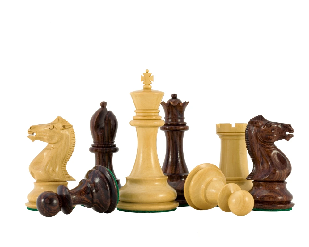 The Sandringham Series chessmen in rosewood and boxwood represent classic Staunton at its very best. These chessmen have come from the world’s best producers of luxury chess pieces and have been made without compromise from the finest graded rosewood and clean graded boxwood. Each piece has just the right amount of weighting in the base to allow perfect balance, something that can be truly appreciated when you begin to move the chessmen around the board. The level of detail in the knights is outstanding. They retain a classic Staunton pattern and the uniformity among all four knights is unsurpassed.