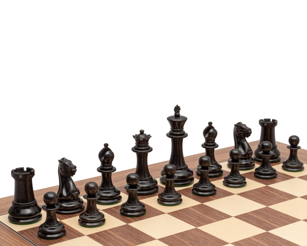 Handcrafted in high quality ebony and boxwood in the world famous and classic Staunton design, these 1851 Reproduction Staunton Chessmen are highly detailed and superbly finished. a 4.4 inch king,