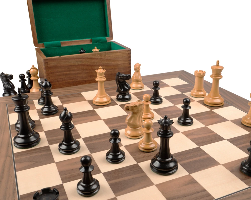 These highly detailed and superbly finished Reproduction Staunton Ebony Chessmen 1869 Model boast an imposing 4 inch king including his royal finial. Supplied by the same chess workshop that produces some of the world’s finest chessmen, these chessmen have been turned from solid wood then painstakingly carved with exquisite detailing.
