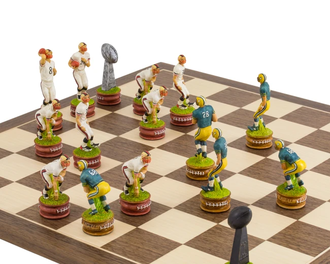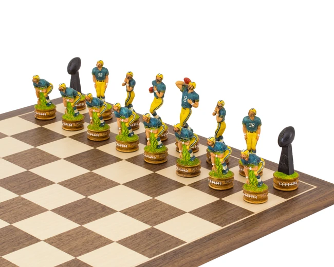 The chess board in this set has been expertly crafted by Rechapados Ferrer in Spain using precision laser cutting techniques and stunning wooden veneers combined with expert lacquering and finishing. The underside of the board is finished in a satin veneer that is a different colour from the playing surface of the board. The veneers used for the underside may vary in colour from batch to batch.