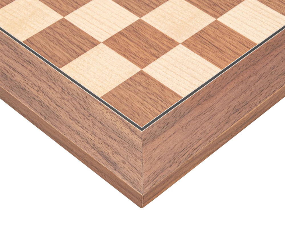 The chess board in this set has been expertly crafted by Rechapados Ferrer in Spain using precision laser cutting techniques and stunning wooden veneers combined with expert lacquering and finishing. The underside of the board is finished in a satin veneer that is a different colour from the playing surface of the board. The veneers used for the underside may vary in colour from batch to batch.