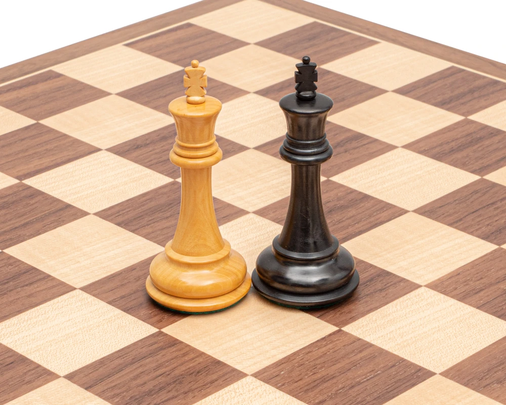 The chess board in this set has been expertly crafted by Rechapados Ferrer in Spain using precision laser cutting techniques and stunning wooden veneers combined with expert lacquering and finishing. The underside of the board is finished in a satin veneer that is a different colour from the playing surface of the board. The veneers used for the underside may vary in colour from batch to batch.