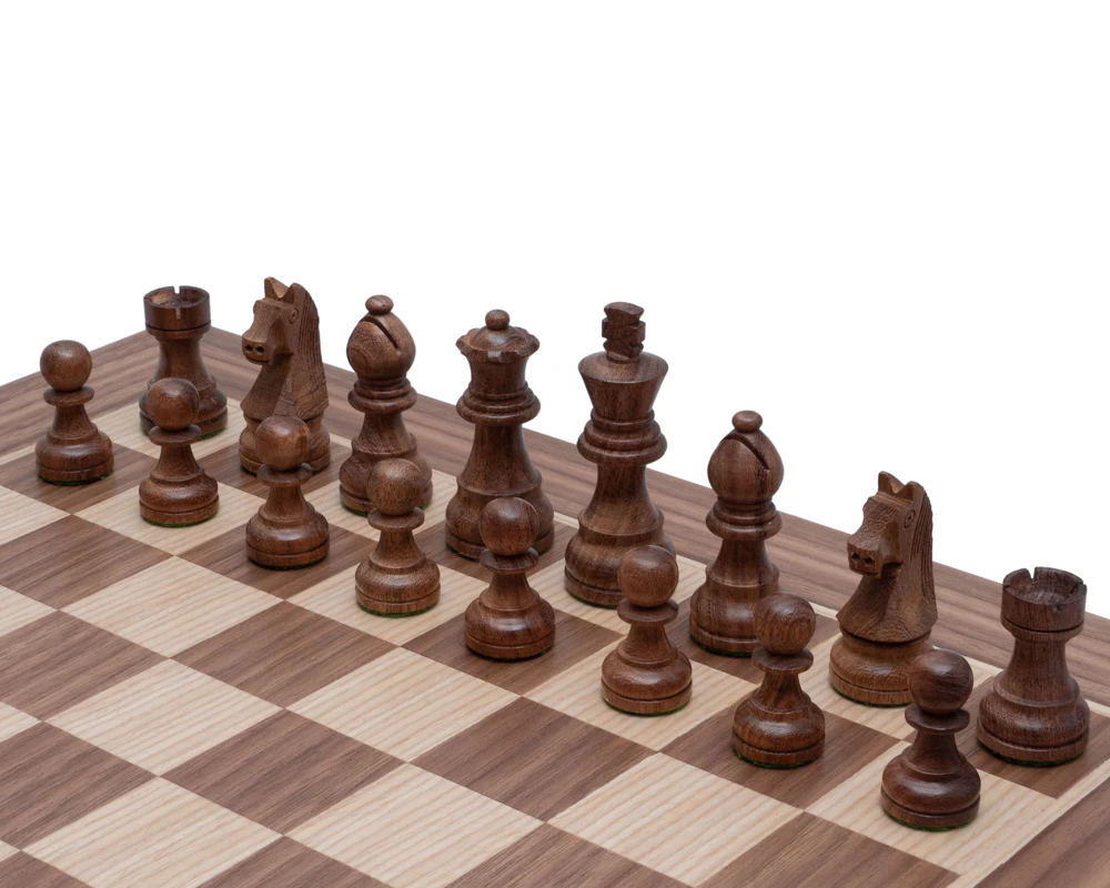 As with all our Down Head range, these Acacia editions are a lovely set of weighted chess men made to our usual exacting high standard. They all come with thick green billiard cloths as standard and they sit, perfectly on a beautiful Greek creation in the walnut and maple. Best know for their expertise in marquetry, Manopoulos also produce a range of lovely chess boards, some of which we have added to Regency Chess board range.