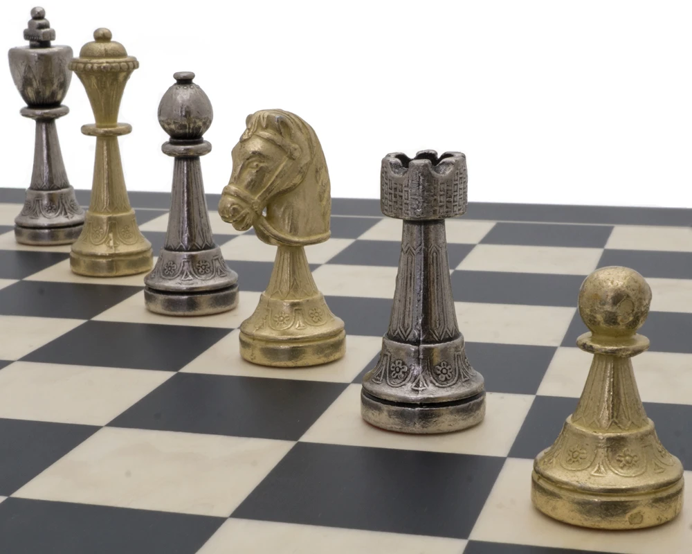 The chess board in this set has been expertly crafted by Rechapados Ferrer in Spain using precision laser cutting techniques and stunning wooden veneers combined with expert lacquering and finishing. The underside of the board is finished in a satin veneer that is a different colour from the playing surface of the board. The veneers used for the underside may vary in colour from batch to batch.