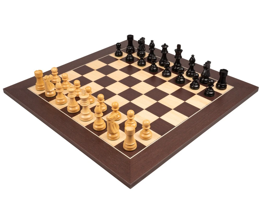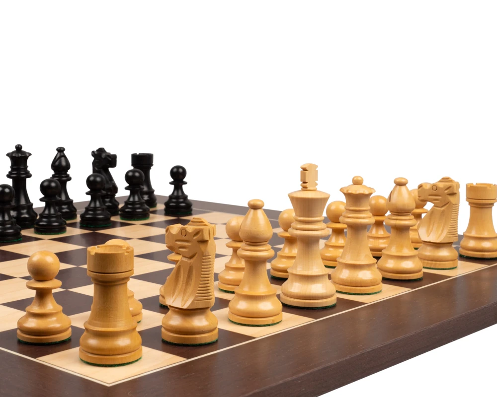 Two of Regency Chess’ favourites French Knight Series Ebonised Staunton Chess Pieces and Wenge and Maple Deluxe Chess Board come together to make this stunningly beautiful yet classically simple chess set