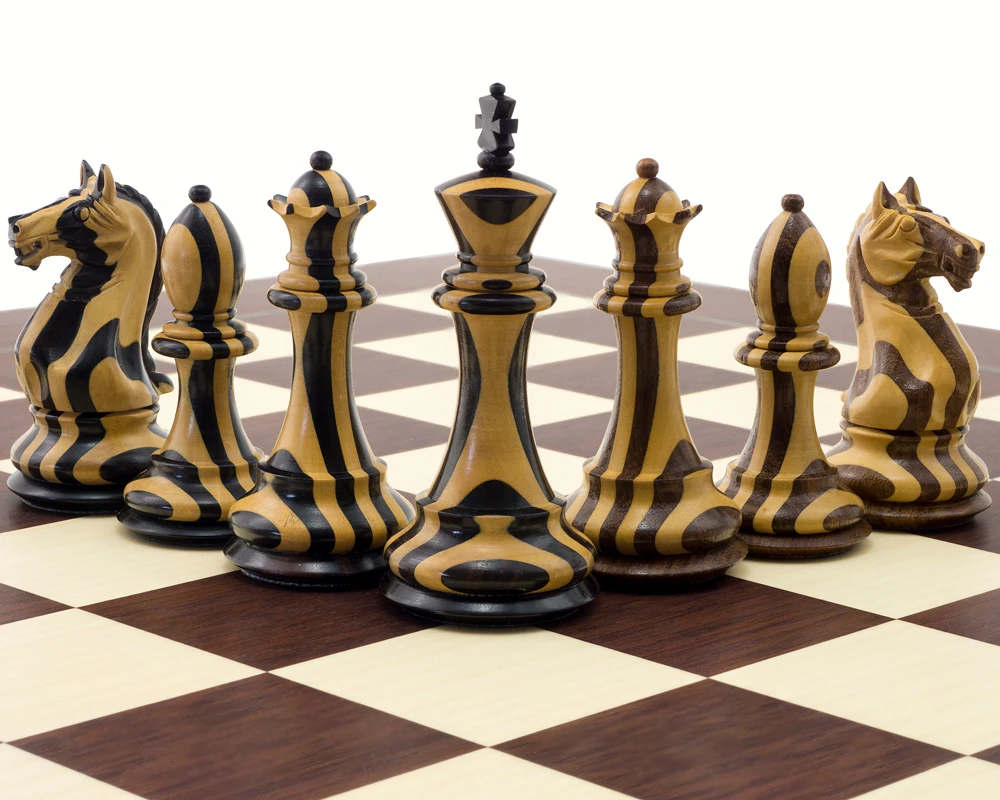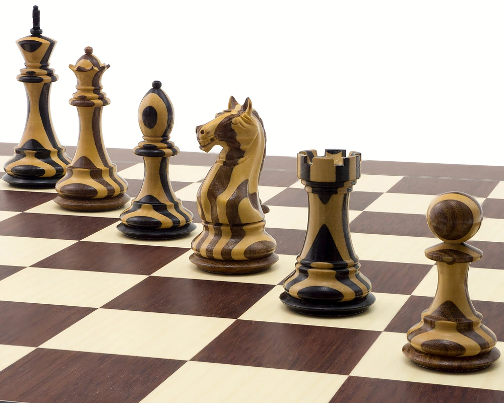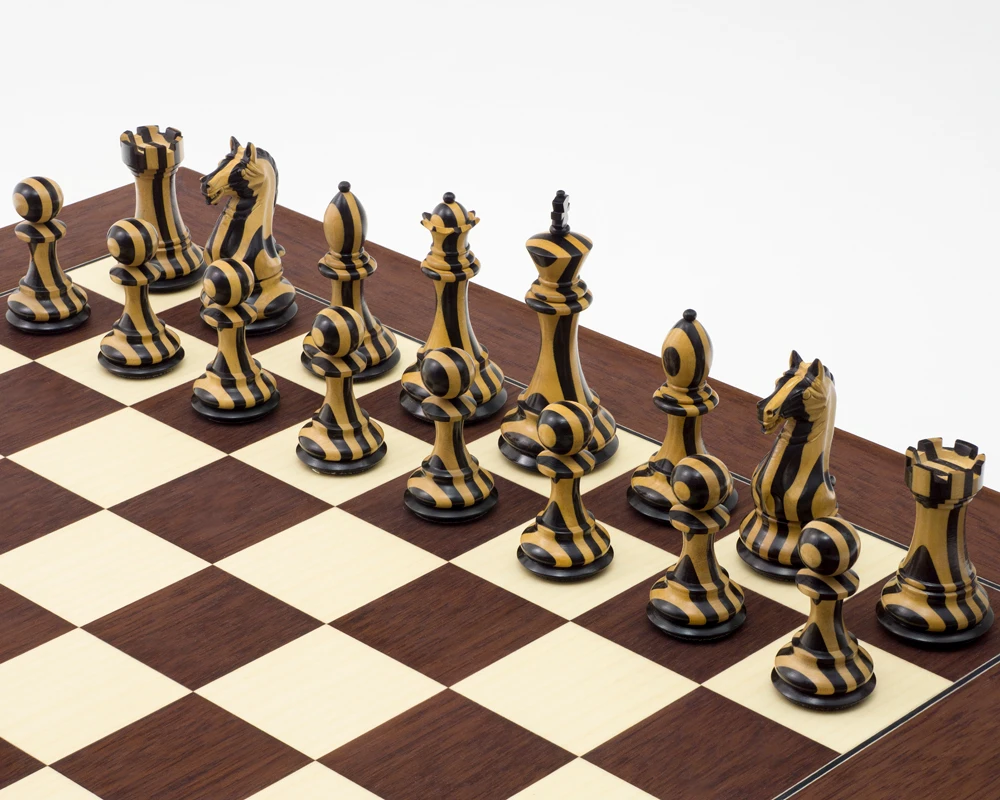 The chess board in this set has been expertly crafted by Rechapados Ferrer in Spain using precision laser cutting techniques and stunning wooden veneers combined with expert lacquering and finishing. The underside of the board is finished in a satin veneer that is a different colour from the playing surface of the board. The veneers used for the underside may vary in colour from batch to batch.