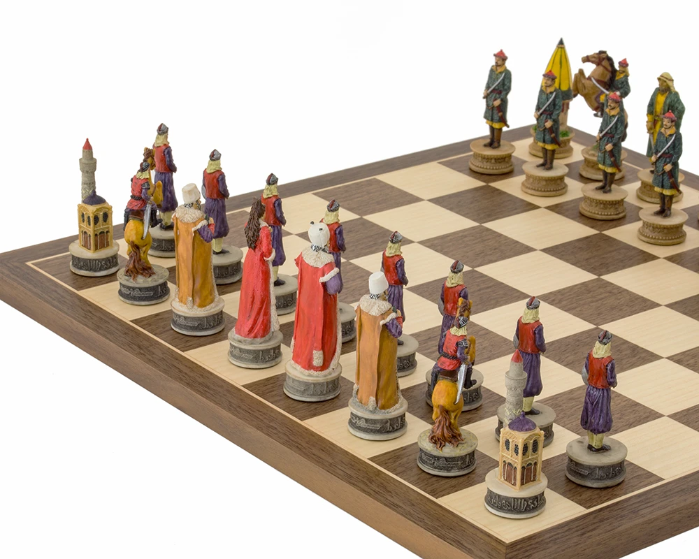 The chess board in this set has been expertly crafted by Rechapados Ferrer in Spain using precision laser cutting techniques and stunning wooden veneers combined with expert lacquering and finishing. The underside of the board is finished in a satin veneer that is a different colour from the playing surface of the board. The veneers used for the underside may vary in colour from batch to batch.