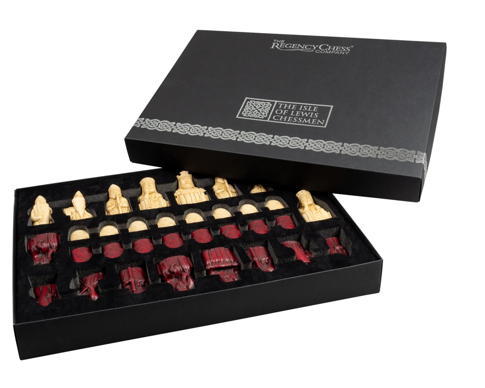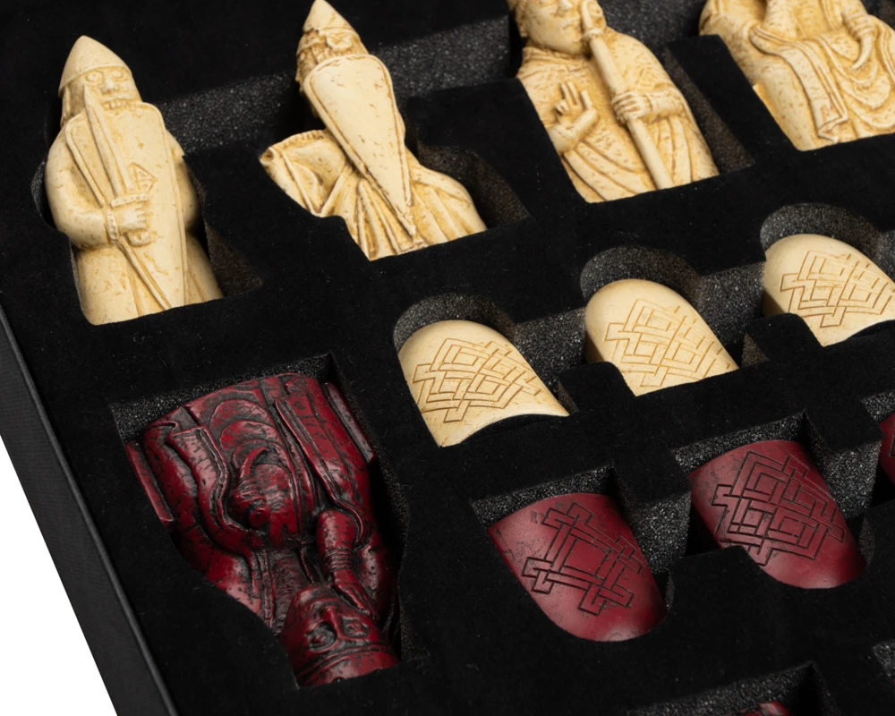 We all love the quirky Isle of Lewis chessmen with their magical history and background but here is something a little bit different. Our beloved chess pieces are now available in red and cream. Nothing is lost in the quality, the amazing detail has been retained and you will still get the additional queens along with a cleaning cloth, chess rules, and a two year warranty.