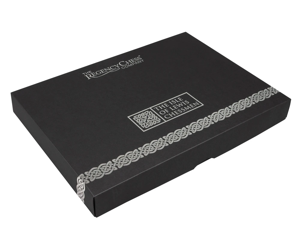 This superb chess set combines the legendary Lewis Chessmen with a beautiful wooden chessboard made from mahogany and maple. The chessmen are a very accurate reproductions of the original Isle of Lewis figures, found on the island over 200 years ago. These superb British made chess pieces are brought to you by the Regency Chess Company. The accuracy is stunning as they are moulded from detailed laser scans of the originals. The Lewis chess pieces have become an iconic legend and remain one of the most famous and original chess designs.