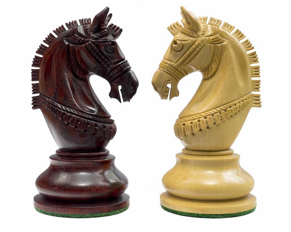 A hand turned rook stands next to the knight, supporting a traditional castle top underneath a slim midriff; comfortable in hand and a true delight to play with.
