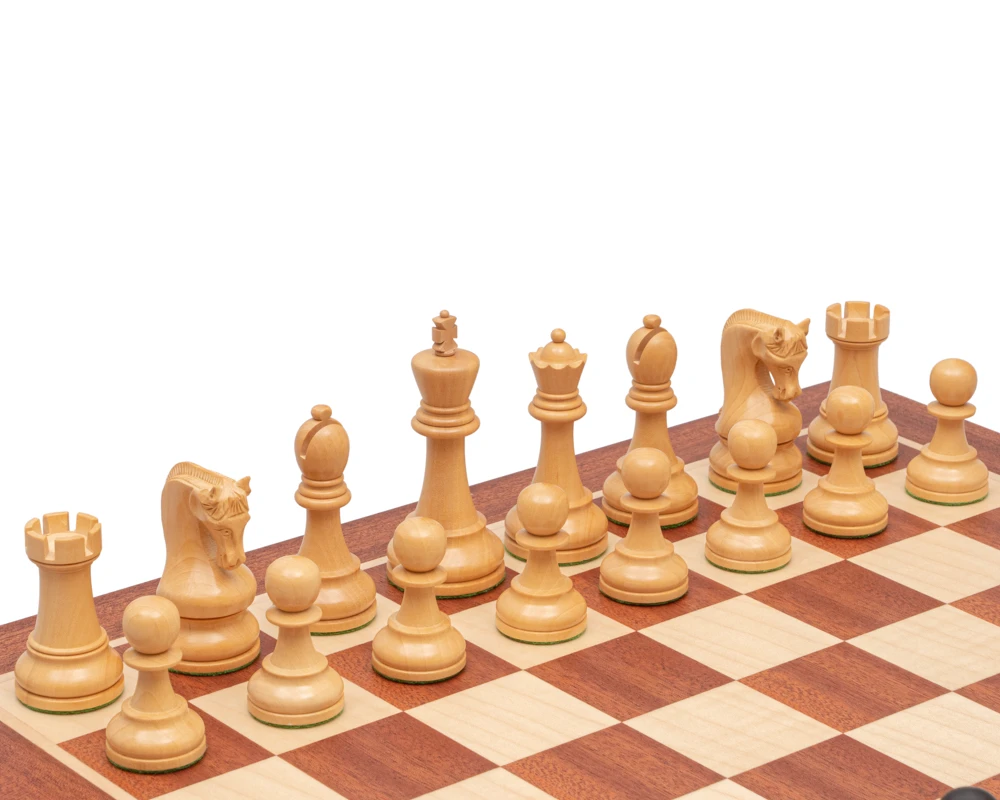 The chess board in this set has been expertly crafted by Rechapados Ferrer in Spain using precision laser cutting techniques and stunning wooden veneers combined with expert lacquering and finishing. The underside of the board is finished in a satin veneer that is a different colour from the playing surface of the board. The veneers used for the underside may vary in colour from batch to batch.
