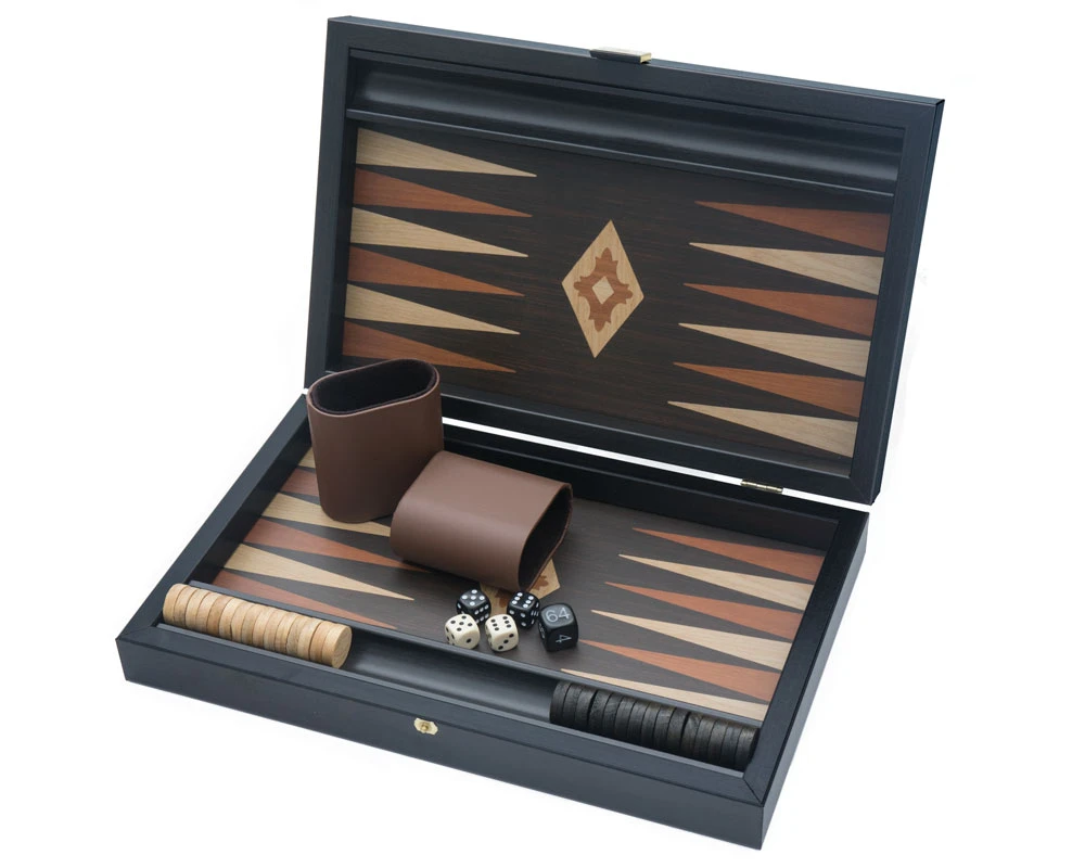 This new and very much improved version of the Manopoulos Wenge Travel Backgammon Set has been very well received here at The Regency Chess Company.