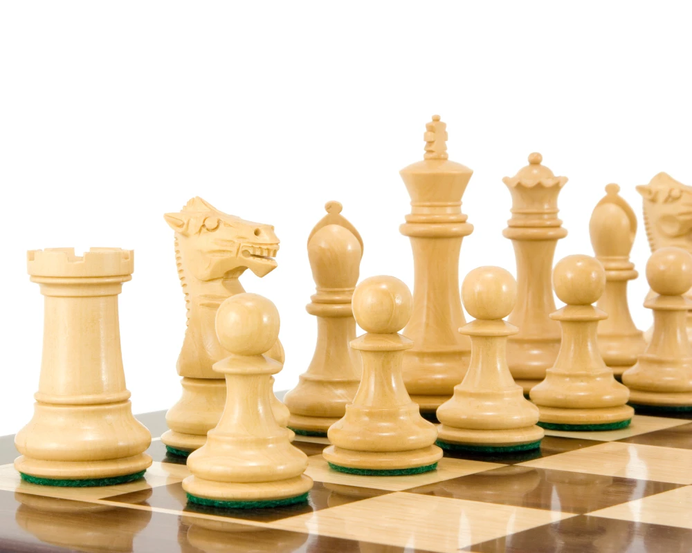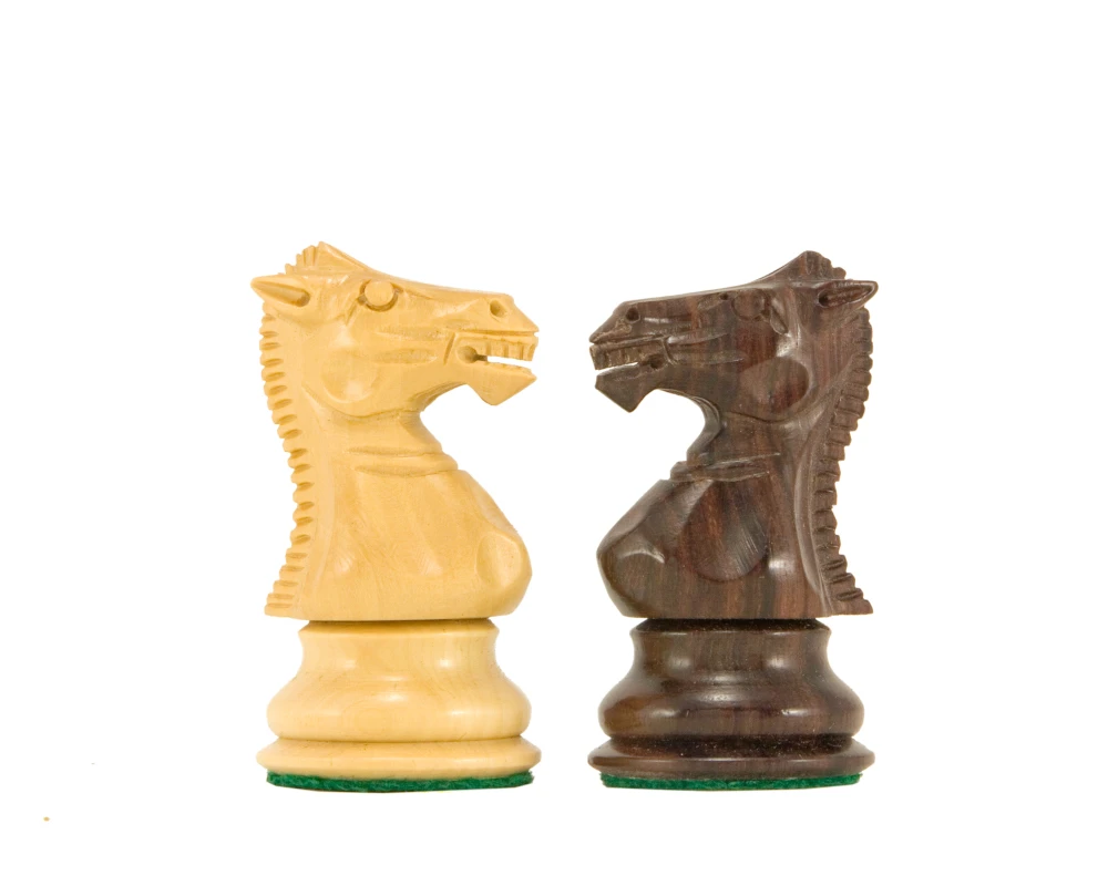 The Windsor Series Staunton Chess Pieces are a small, yet stunning set of chessmen; a classic Staunton design with a beautifully carved knight and bishop. Supplied by the same chess workshop used by the top names in chess, the quality of these rosewood and boxwood chess pieces is without compromise. The level of detail and polish are the best we have seen in a chess set for under £150. With a three inch king and broad bases these chessmen will sit perfectly on a 17.75 inch (45 cm) chess board.
